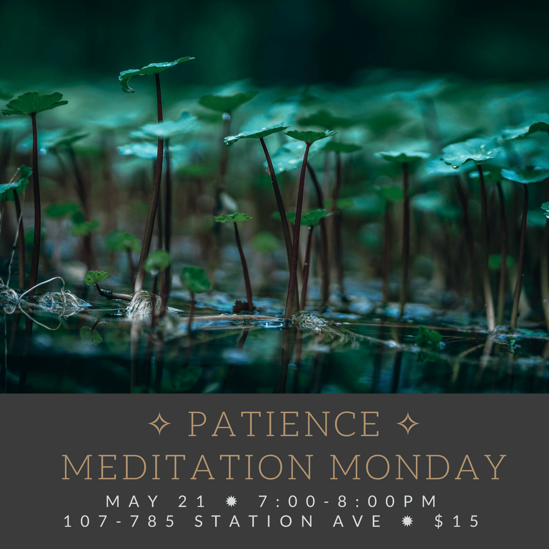 Understanding the value of patience involves a deeper knowledge of natural life cycles. In nature, patience is an obvious part of the intricate flow. In society today, we usually deny it and may lable the slow or entropic times of our lives as “bad”. We are constantly busy, moving from one thing to the next and we wonder why we feel we can’t even catch a breath. It is because we are not allowing patience (acceptance of the seemingly unproductive times) that stress is able to tighten it’s grip on our consciousness. Have you ever rushed yourself to do something so fast that you end up being clumsy? The task ends up taking much longer than if you had performed things slow and mindfully. When patience exists, great things are naturally able to come into creation. Our lives naturally cycle through times of creation and entropy. Patience is about being comfortable with the latter. Meditation is the perfect practice to increase your patience. I can’t wait to discuss this further with you on Monday May 21st!