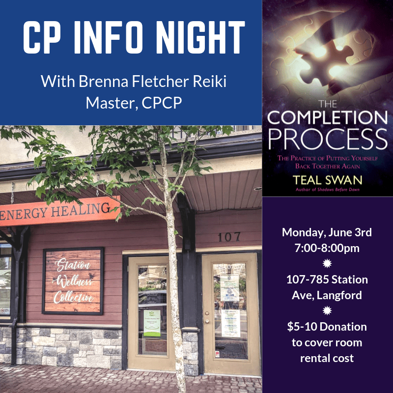 I’ve completed my Completion Process Certified Practitioner training and I’ll be offering Completion Process guided sessions in person and through Skype starting June 1st! Curious about what the Completion Process is? I’m happy to announce a Completion Process information night Monday June 3rd 7-8pm at the Station Wellness Collective.