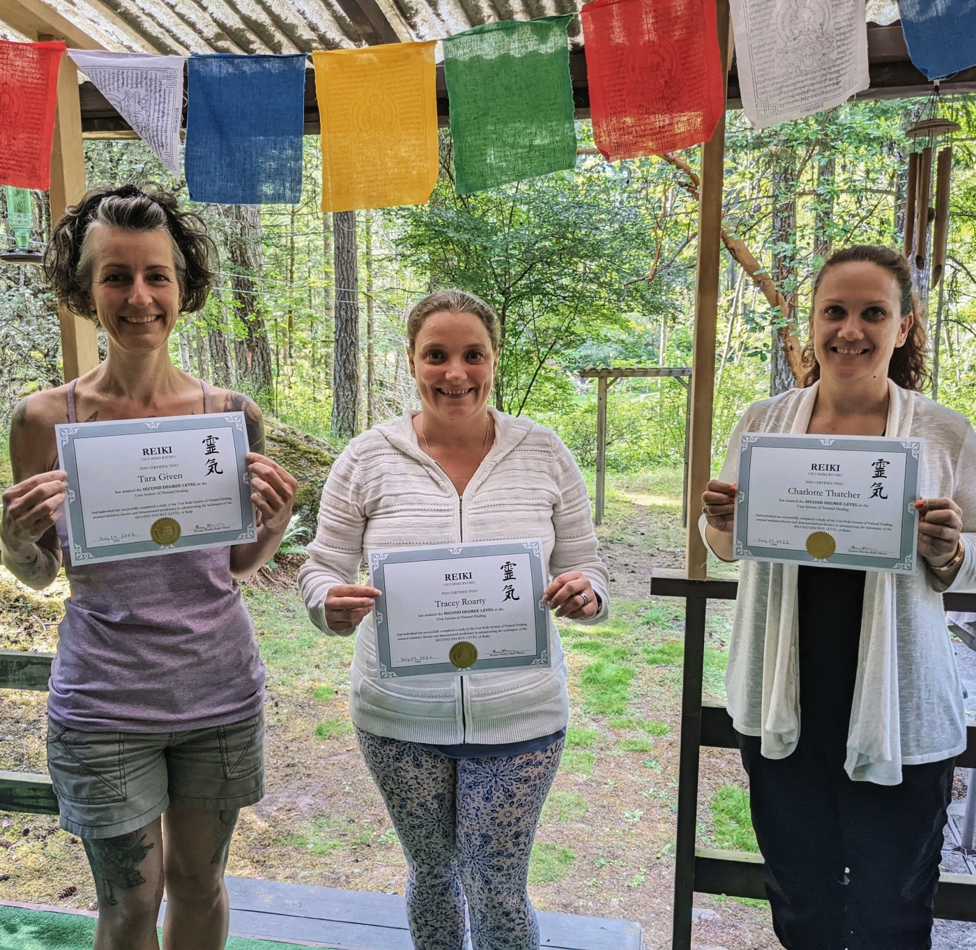 Congrats to these new Reiki Level Two practitioners! We had such a fun time learning yesterday. Seeing these ladies deepen their Reiki wisdom was an honour. I’m in awe of their kind hearts, open minds and eagerness to try new things. Their second attunement will allow them to channel more energy, use Reiki symbols and send Reiki long distance! These are some talented healers and I’m so happy they took this next step on their Reiki journeys! 🙌💓