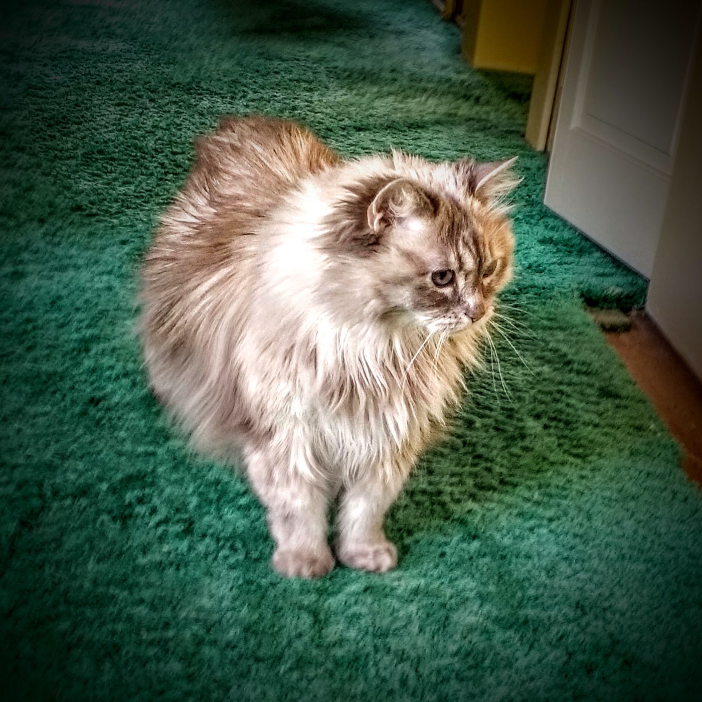 I’m so excited to help out my neighbours and their beautiful cat Winter. Winter is a gorgeous white/grey fluff ball and is Siamese/Himalayan. She is confined to the master bedroom/bathroom because every time she’s let into the rest of the house she pees… on very expensive rugs and furniture! This has created some tension between her and her humans, who are not cat people and sort of inherited her. The owners are committed to helping Winter heal and become the happy kitty she once was. The peeing started when another cat entered the house. Said cat has been gone for 3 years now, and I believe Winter can gain the confidence to once again be cat of the house!